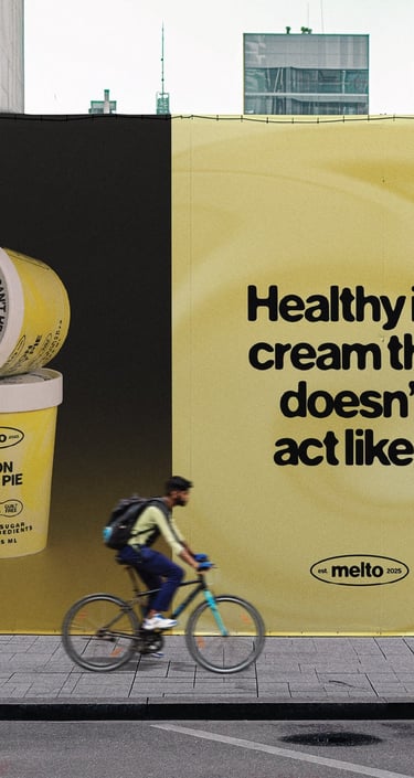 La voix de Melto est confiante, maligne, jamais trop insistante. Pas de blabla inutile : on laisse le produit (et la personnalité) faire le travail. Visuellement, Melto casse les codes du “bien-être épuré” avec des couleurs vives, du flash, du fisheye, et une bonne dose de légèreté. Le résultat ? Une nouvelle vision du healthy : fun, assumée, et sans aucune culpabilité.